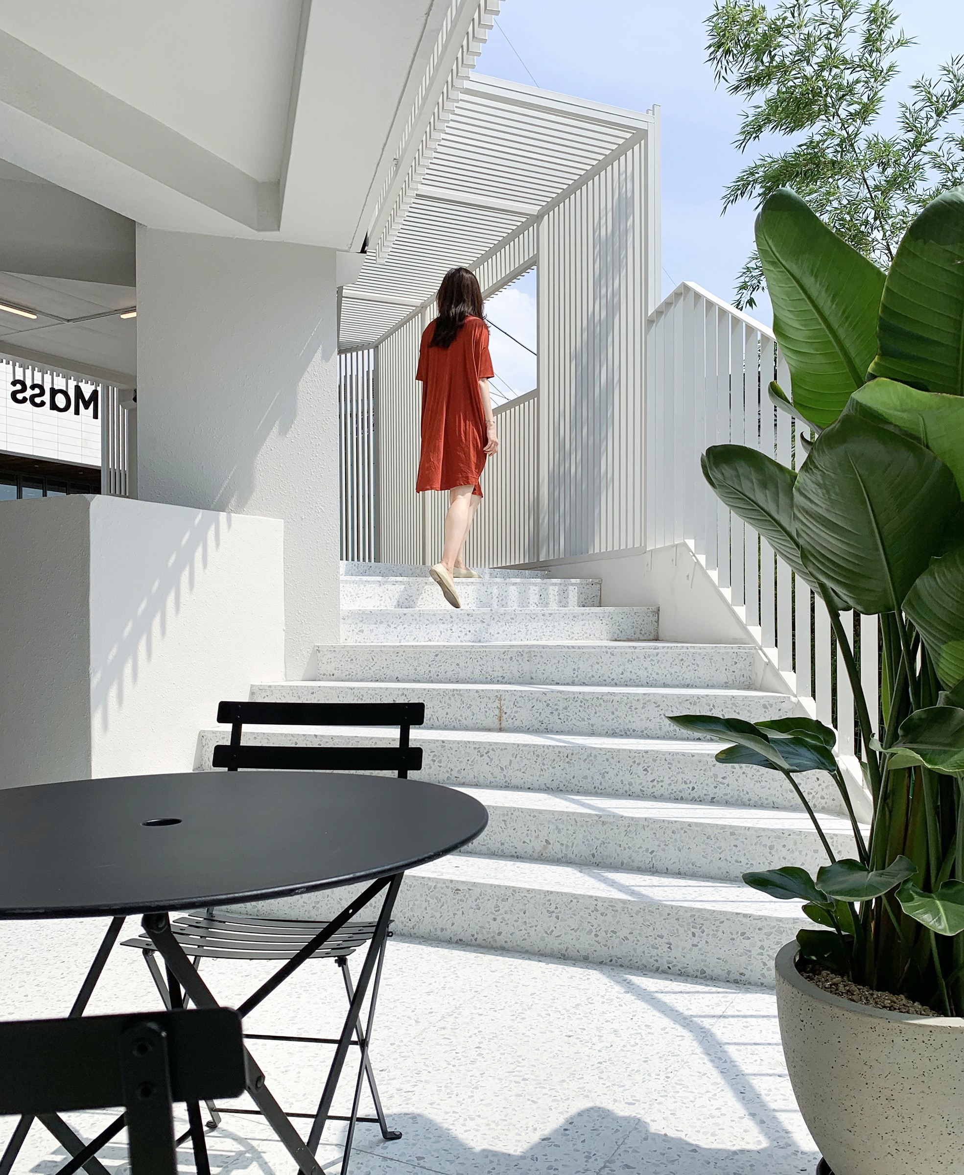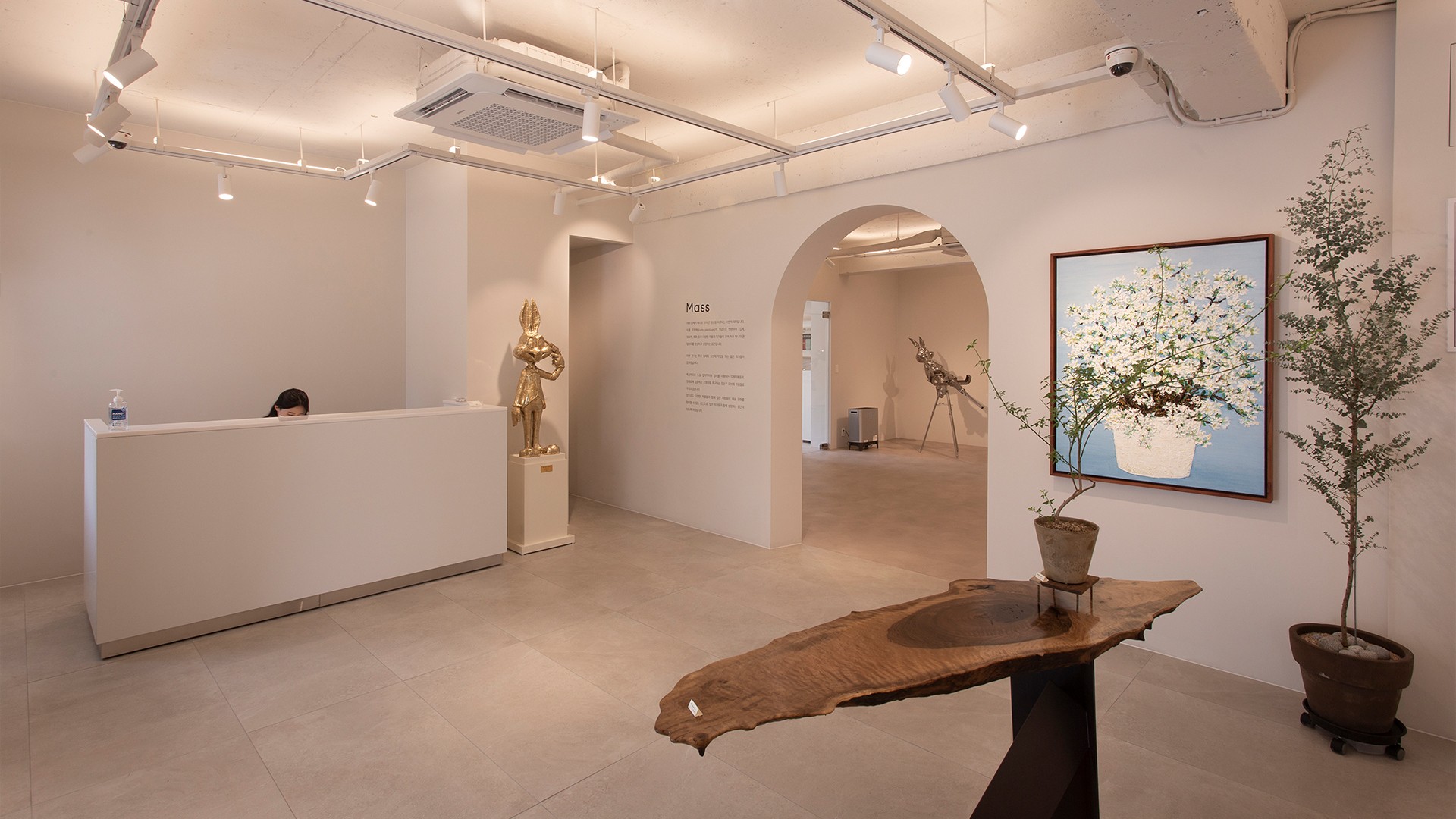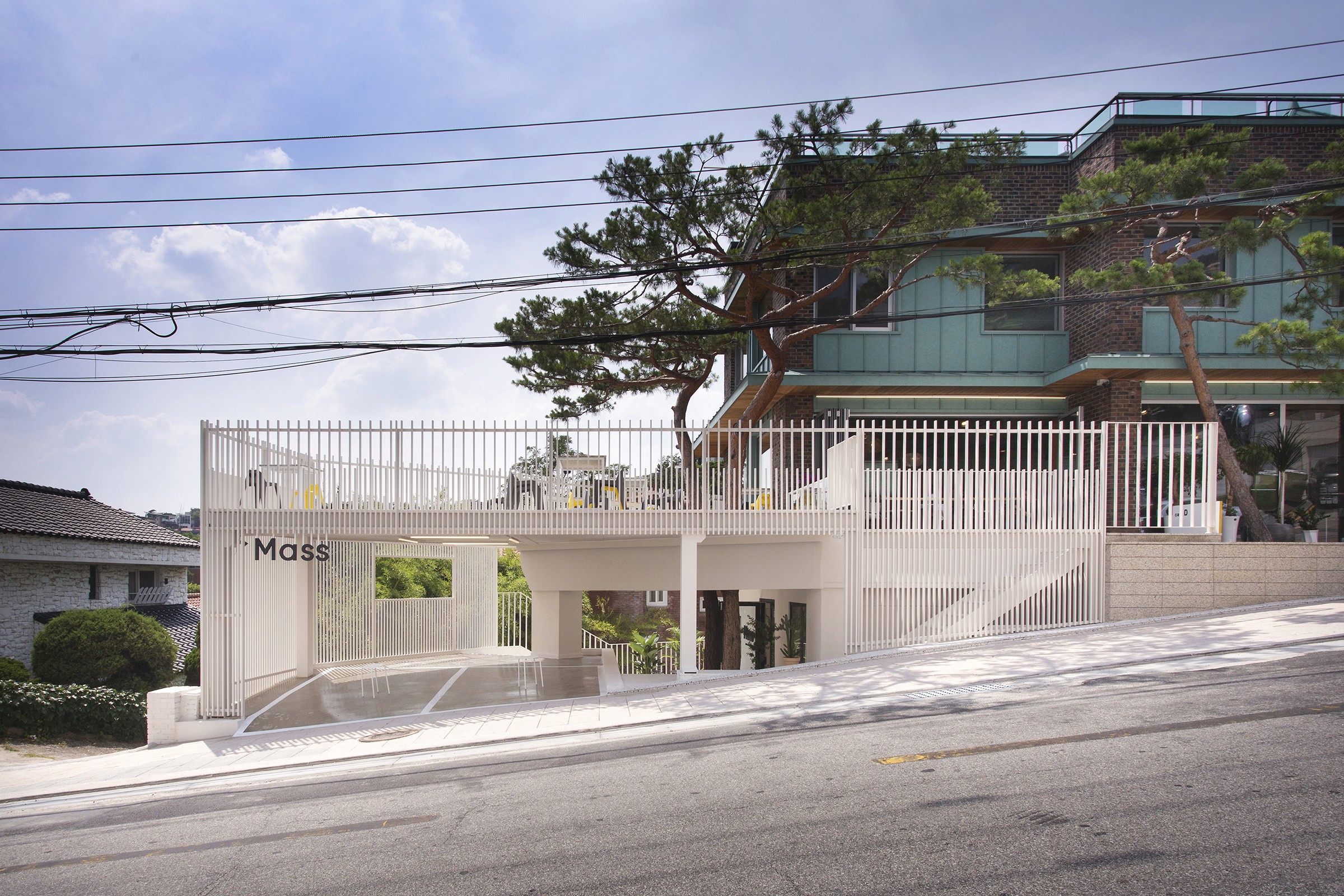 평창동의 한 경사지에는 문화, 예술, 교육을 주요 가치로 삼는 복합문화예술공간 D. SPACE가 있다. 이 프로젝트는 지하 1층 조형예술 갤러리 Mass Arts Plastiques의 인테리어와 외부 공간, 그리고 1층 데크를 새롭게 디자인해 건물을 부분 리노베이션하는 작업이다. 언덕 중턱에 위치한 사이트는 주변 녹지의 풍경이 좋고 도시를 내려다볼 수 있는 지리적 장점이 있다. 이러한 입지의 장점을 최대한 활용하면서도 주변 환경에 자연스럽게 스며들도록 입면과 공간을 계획했다.