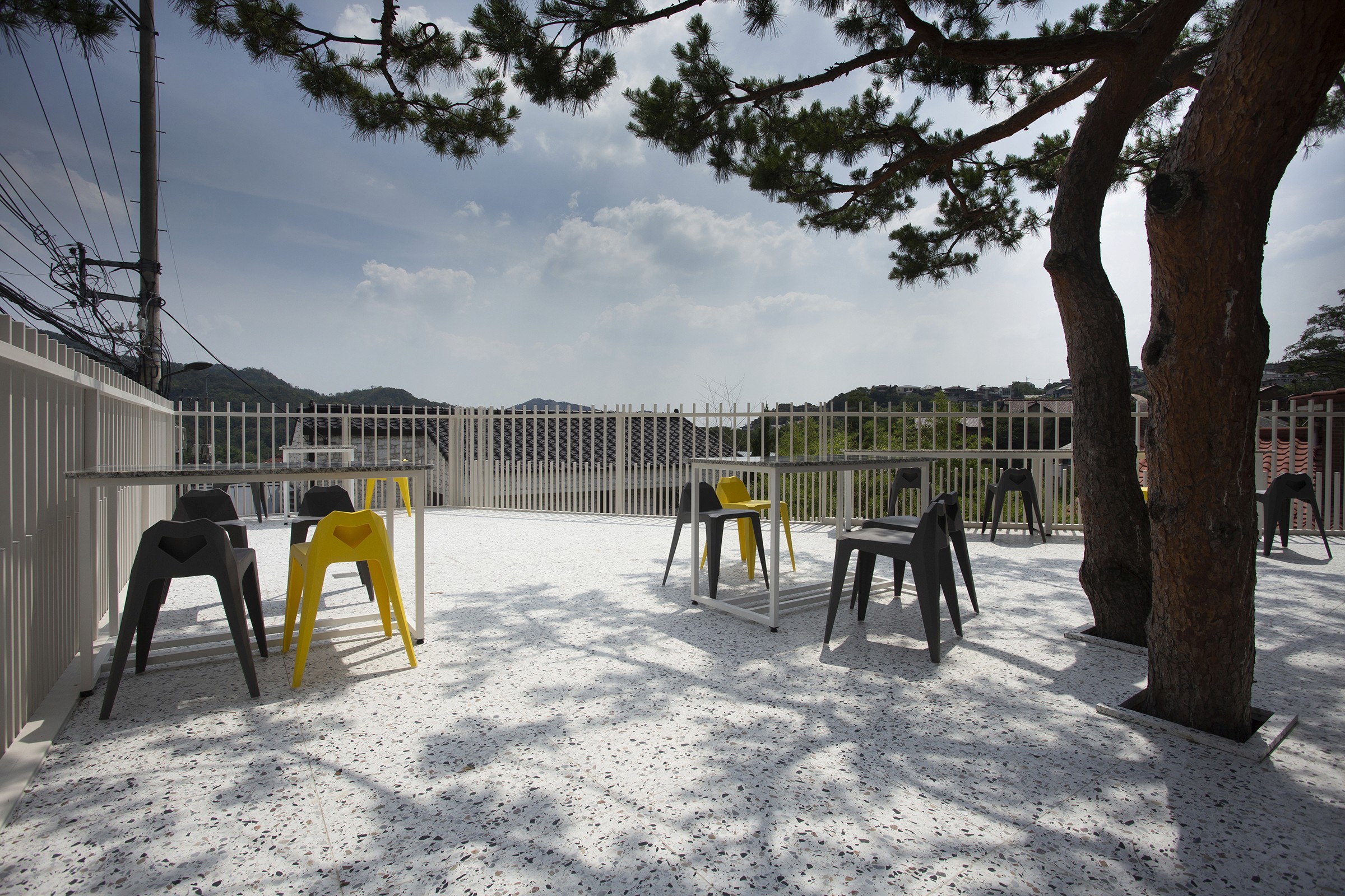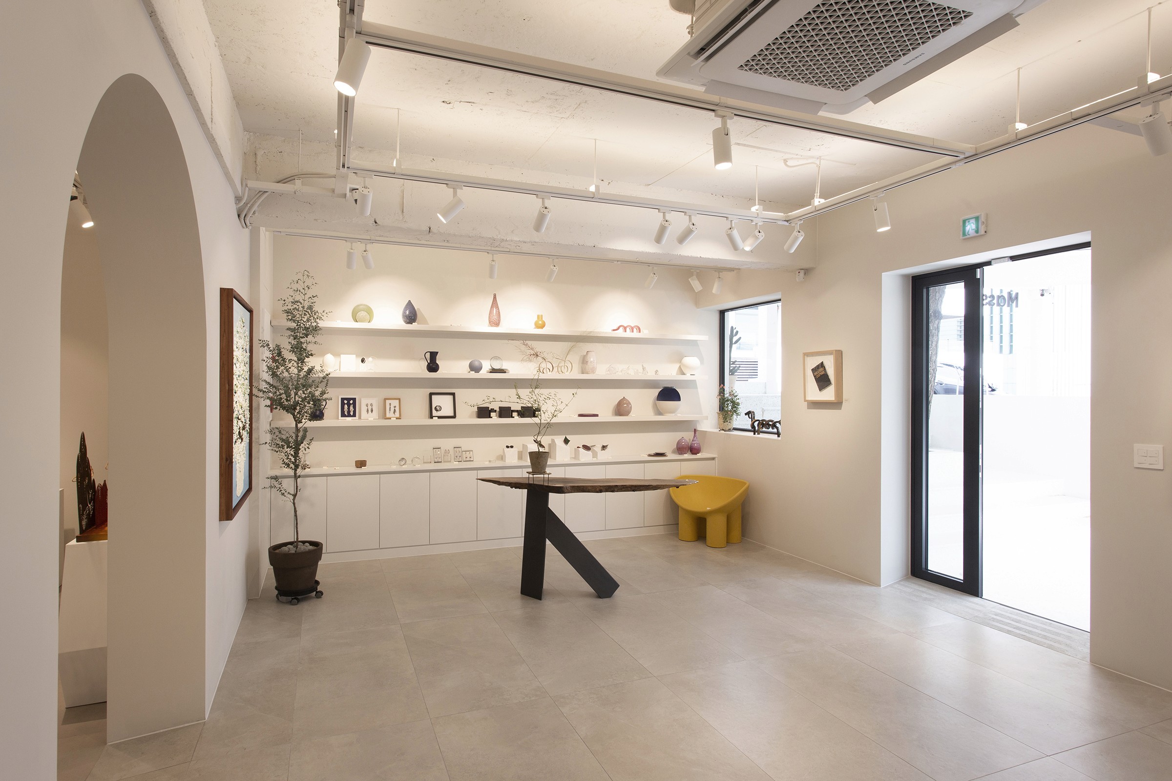 On a sloped site in Pyeongchang-dong sits D. SPACE, a multidisciplinary cultural complex grounded in the values of culture, art, and education. This project is a partial renovation that redesigns the interior of the sculptural art gallery Mass Arts Plastiques on Basement Level 1, along with the adjacent exterior areas and the Level 1 deck. Located midway up the hill, the site enjoys lush greenery and expansive views over the city. The façade and spatial composition were planned to maximize these conditions while blending naturally into the surrounding environment.
