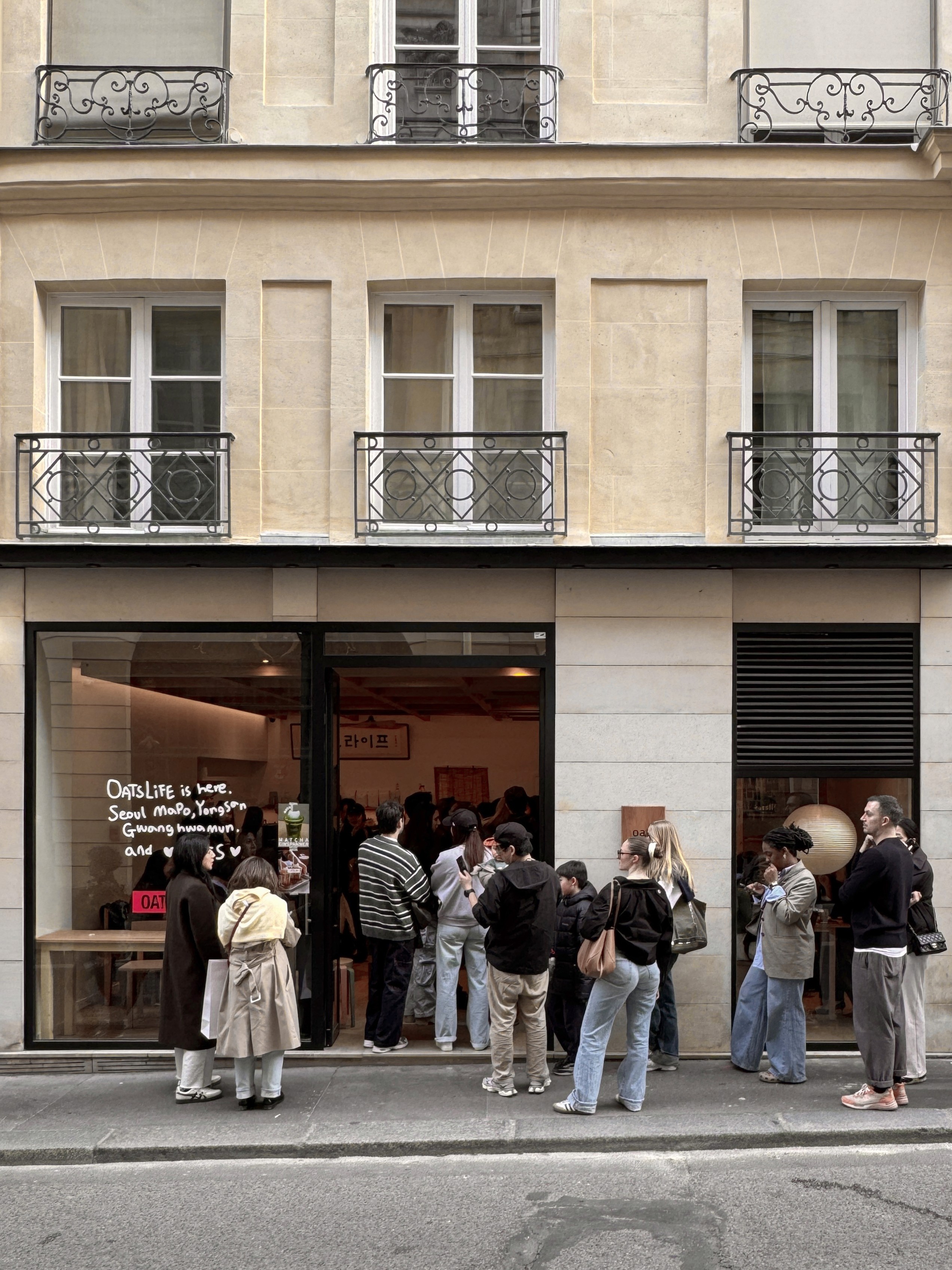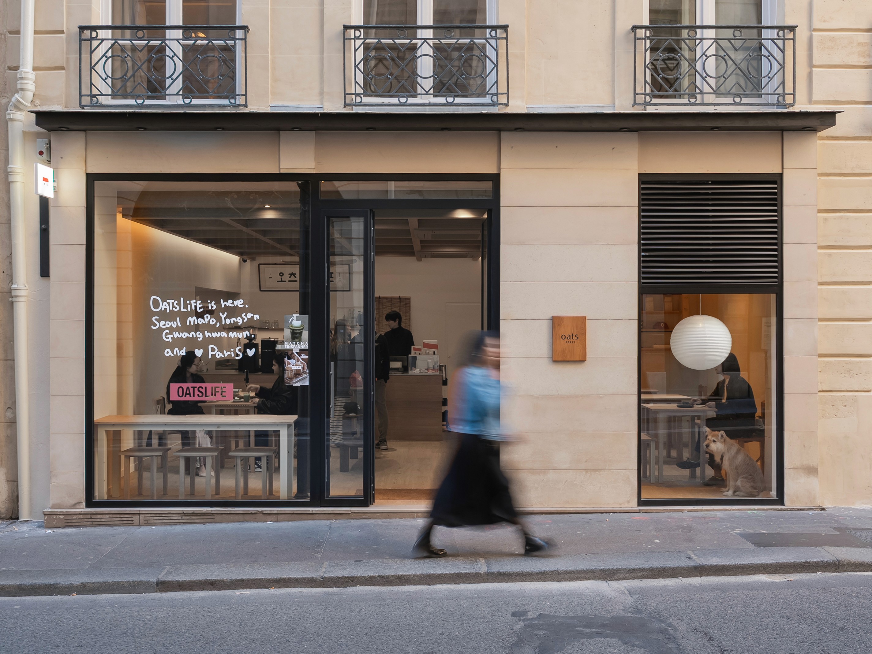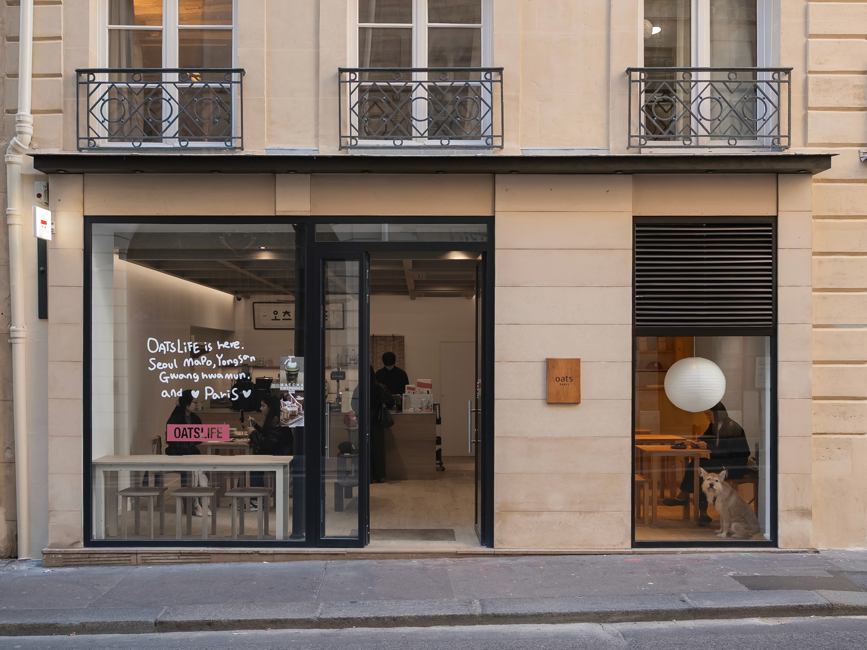 커피 브랜드라기보단 라이프스타일 브랜드에 가까운 오츠커피의 첫 파리 매장은, 그들이 이미 가지고 있는 요소들을 현지에 어떻게 적절하게 배치할 것인가에 있었다. 오츠의 공간에는 몇 가지 공통된 요소가 있다. 백색과 미색, 목재와 종이, 격자, 현판, 그리고 무엇보다 매장 앞에 뒤섞여 서 있는 사람들이다. 오츠가 라이프스타일 브랜드라는 말은 그들이 만드는 제품이 아니라, 섞이고 모이는 장소를 만든다는 데 있다.