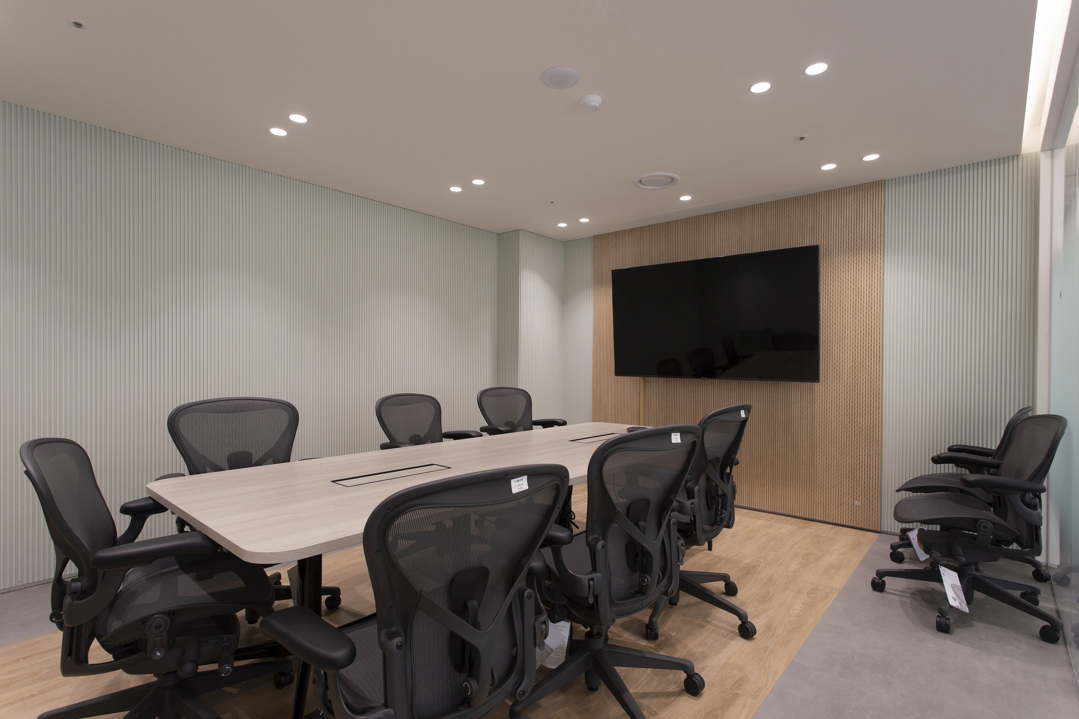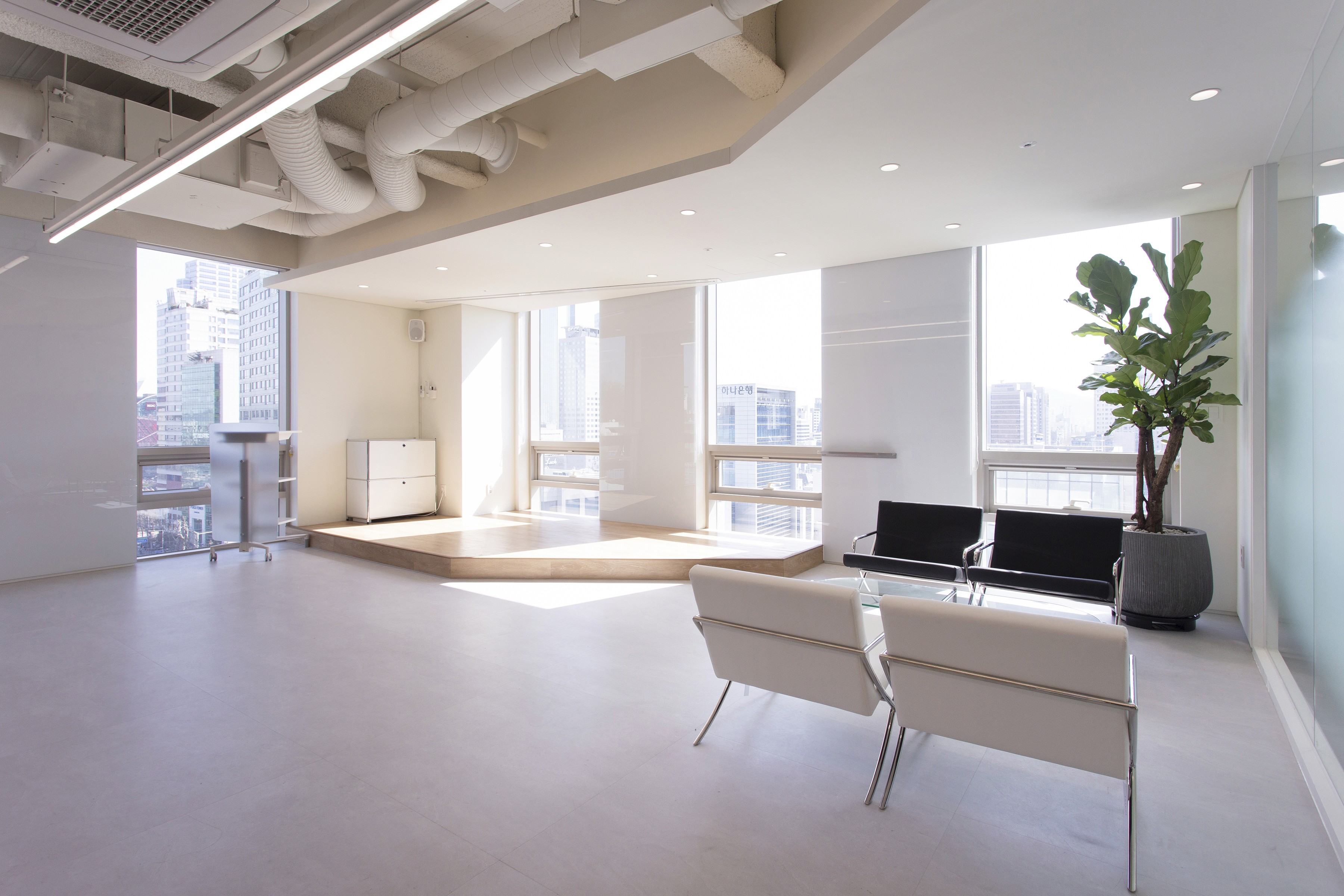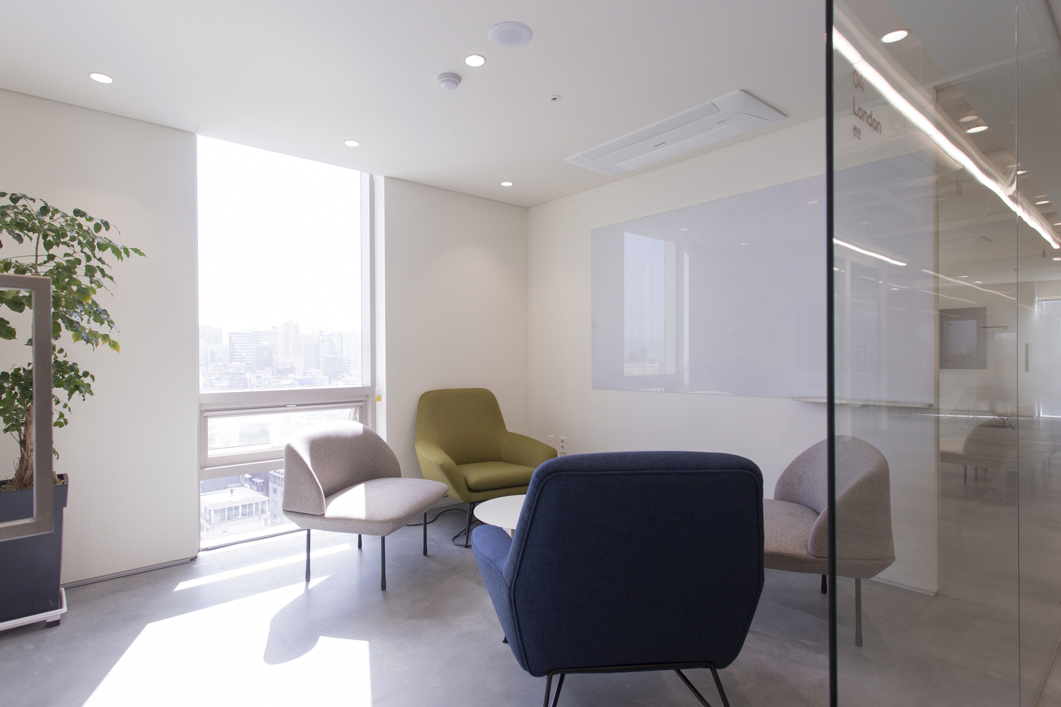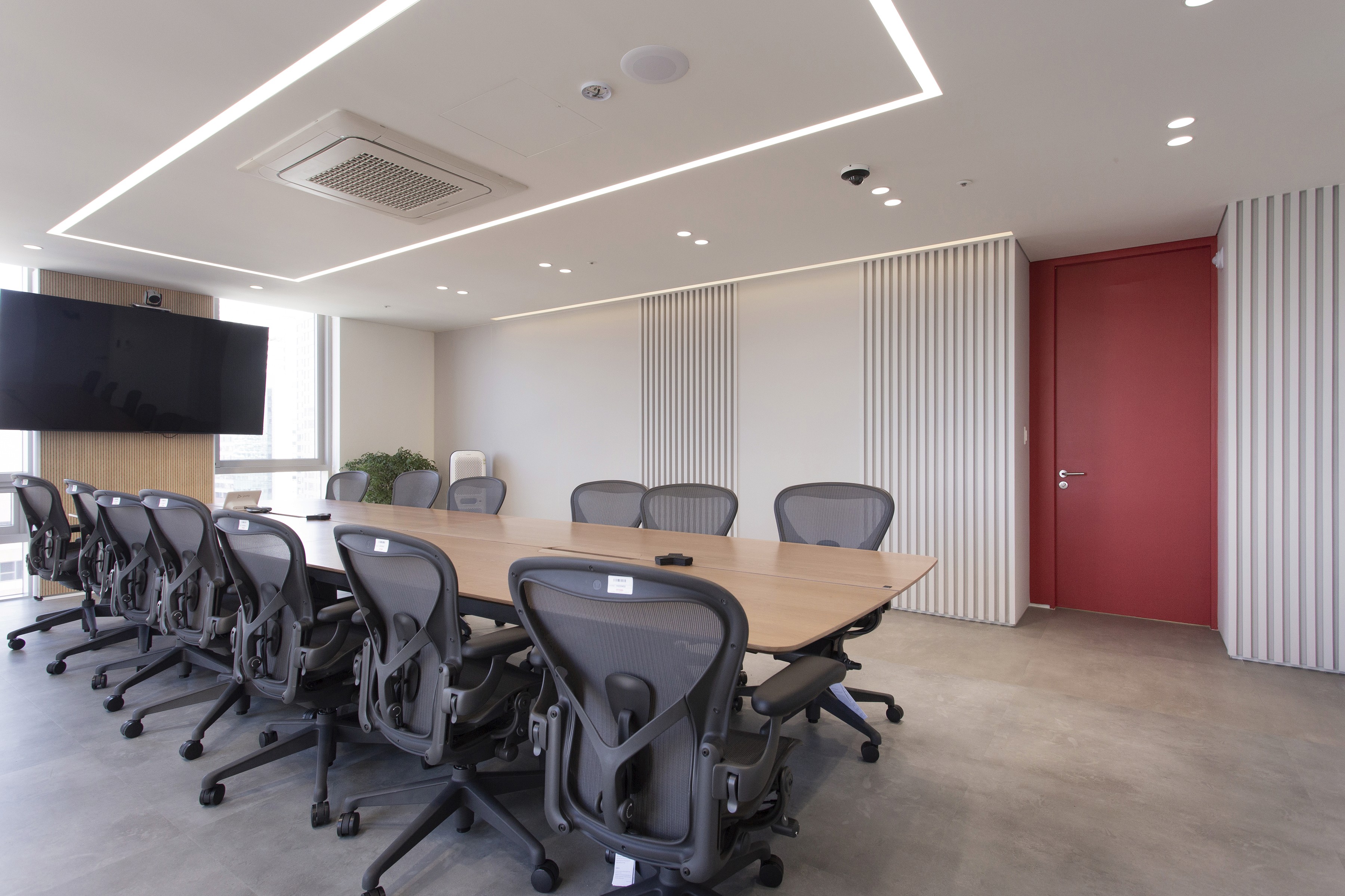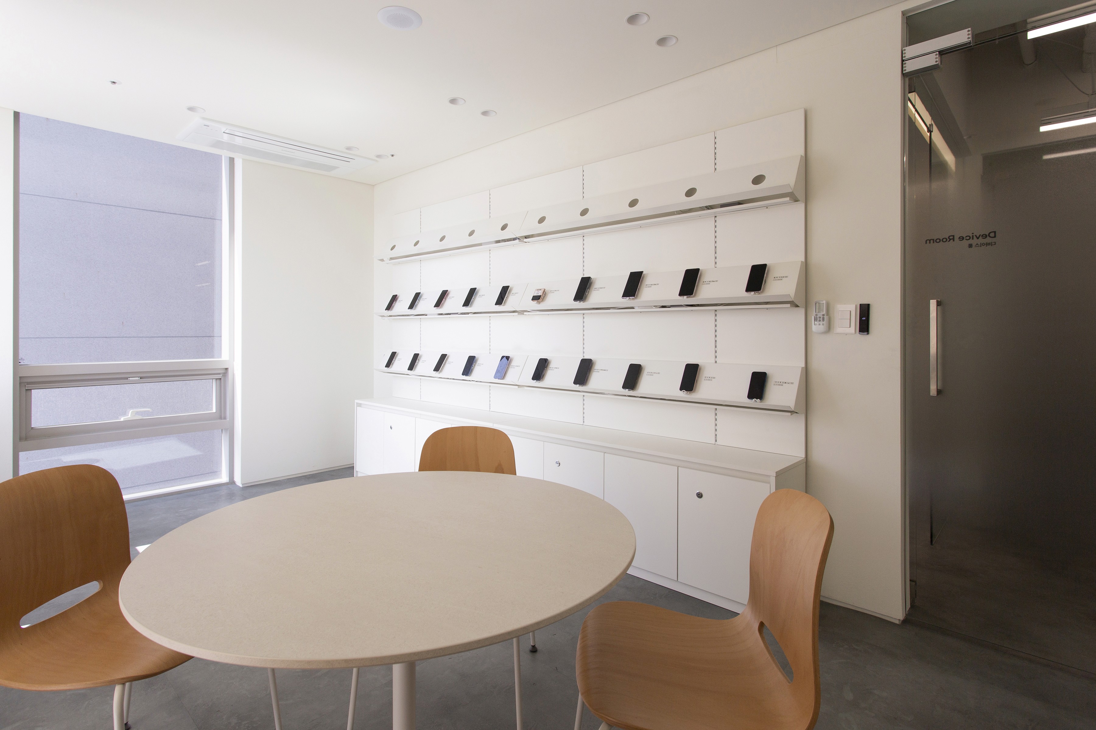 회의 공간은 목적에 따라 다양하게 구성했다. 가벼운 아이데이션을 위한 소파 중심의 라운지형 회의실, 집중적인 업무 회의를 위한 회의실, 분기별 임원 회의를 수용할 수 있는 대회의실, 각종 모바일 기기를 테스트할 수 있는 디바이스 룸, 그리고 입사 면접을 위한 면접실과 대기실로 구성했다.