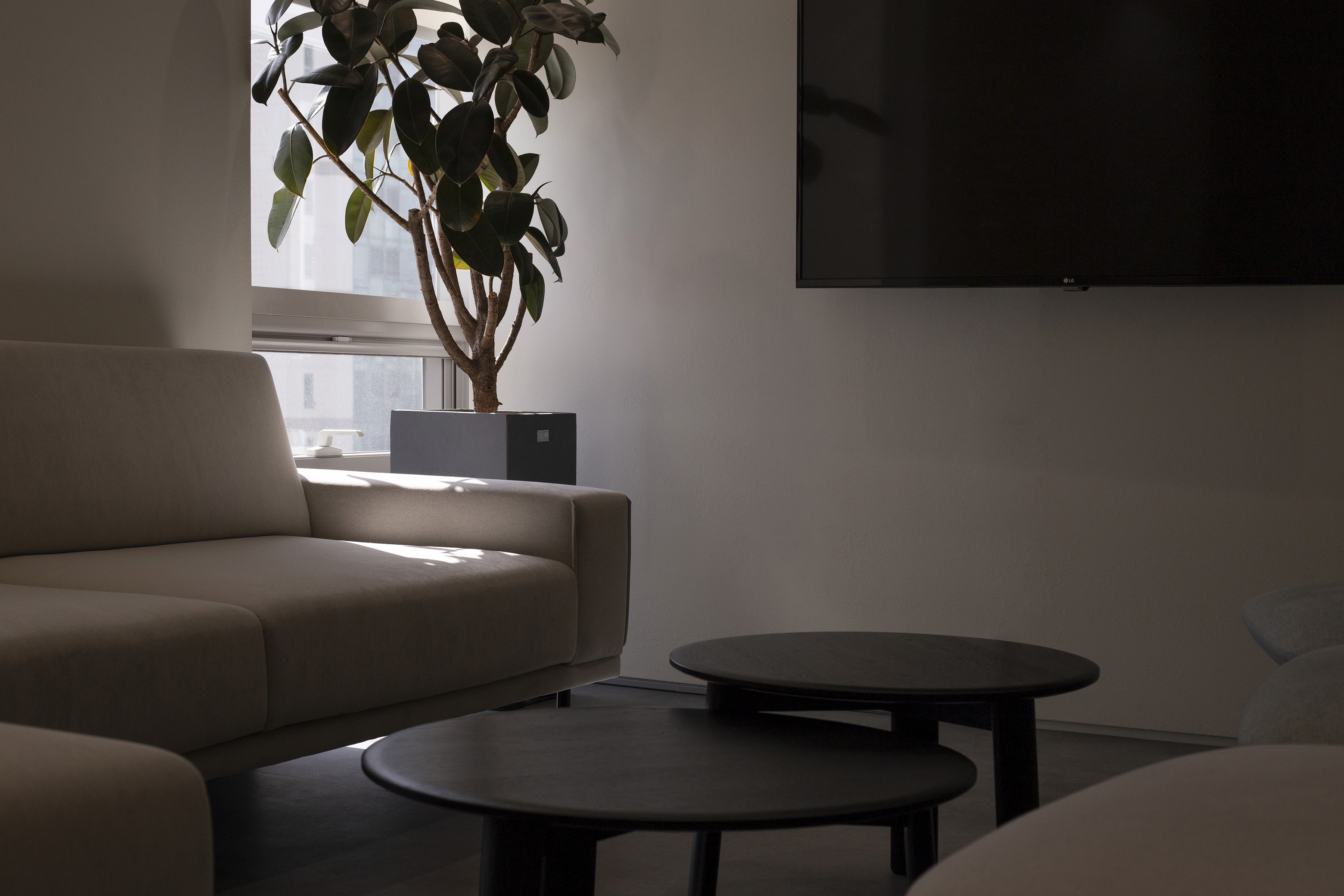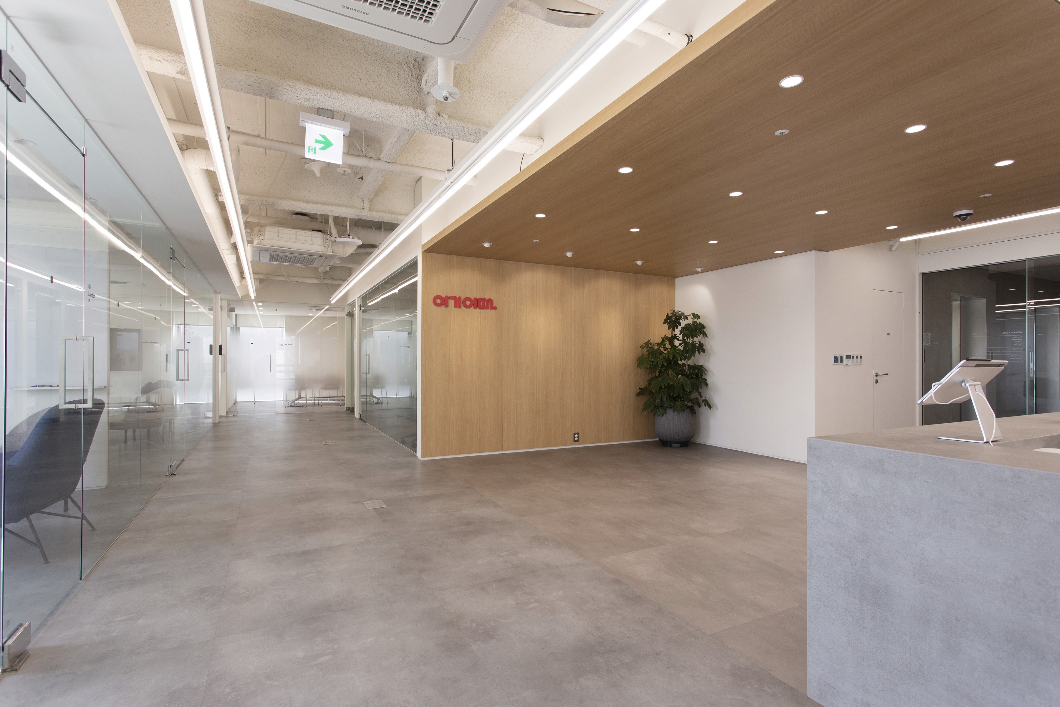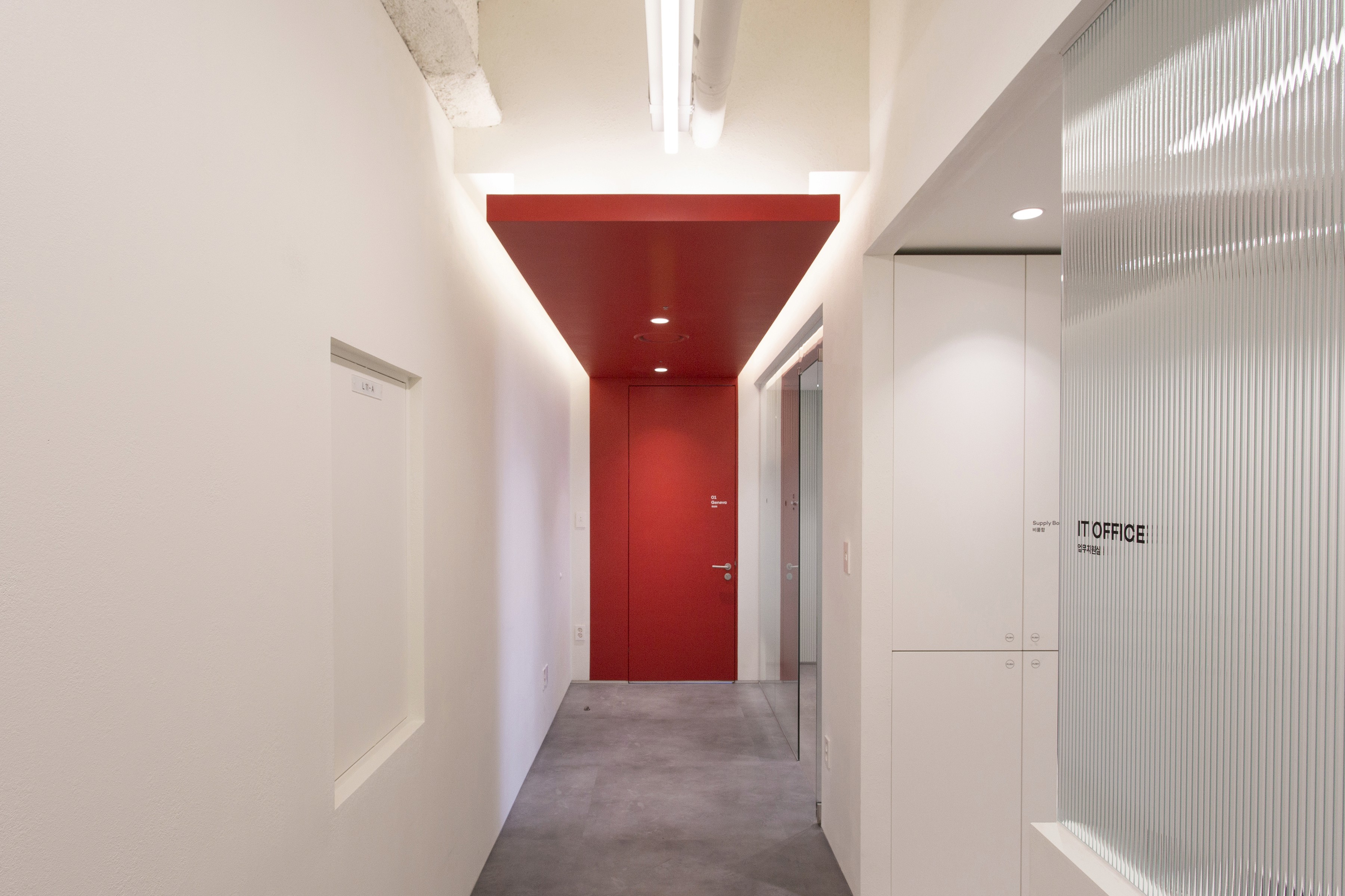 An office lobby is where a company’s first impression is formed. Since the Yeogi Eottae office occupies a mid-level floor of the building, the lounge plays a central role—serving both as an outward-facing lobby and as an internal hub that also accommodates meeting spaces for employees. For a startup that has grown into a unicorn, the key values are open communication and free collaboration without boundaries. To express this culture spatially, the project was planned around the concept of a seamlessly connected space. Zones are defined through transparency, and the idea is made tangible through a structural element that runs through and connects each area.