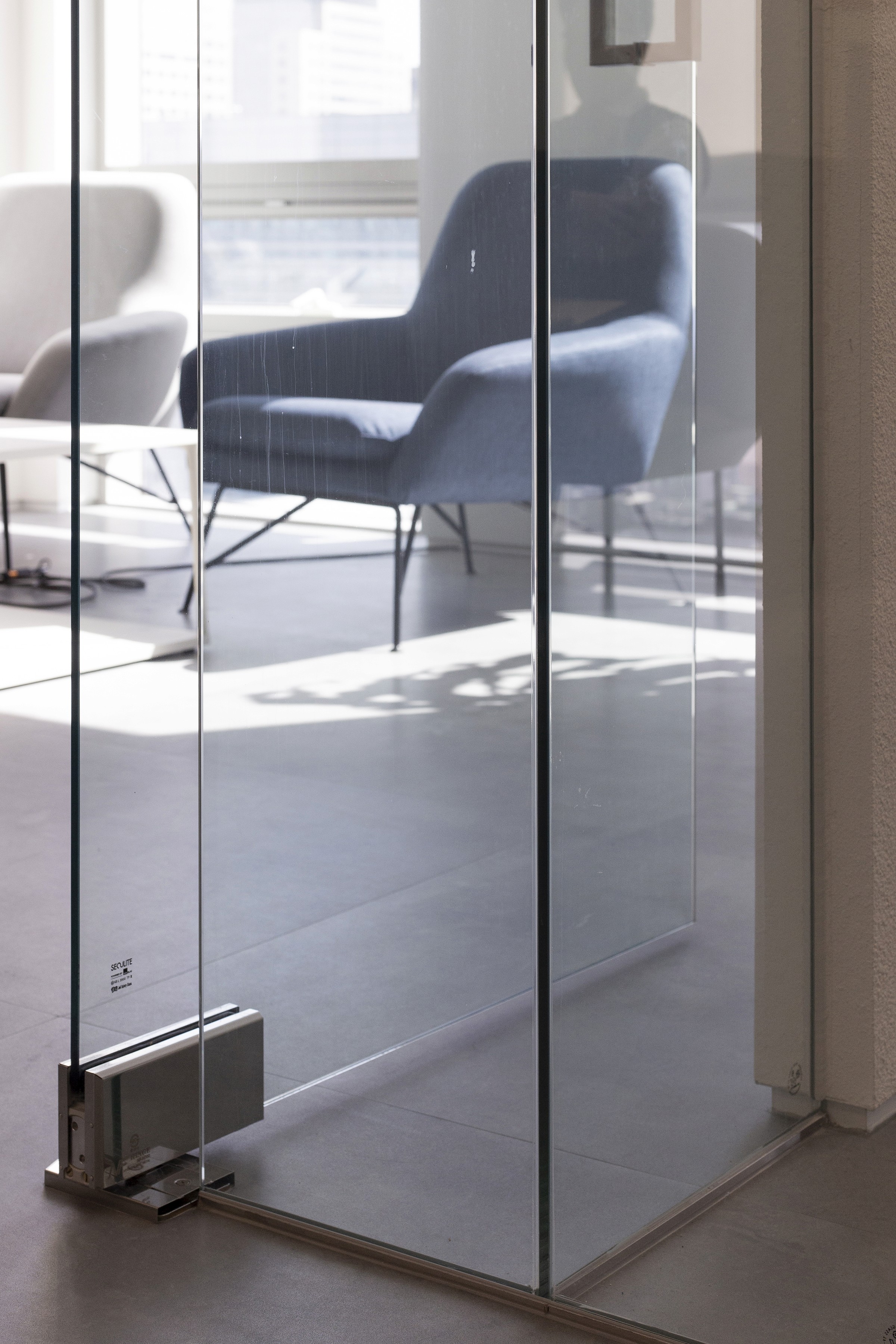 오피스 로비는 기업의 첫인상을 결정하는 장소다. ‘여기어때’ 오피스는 건물의 중간층을 사용하기 때문에, 대외적인 로비 기능과 함께 내부 임직원의 회의 공간을 품은 라운지가 핵심 역할을 맡는다. 유니콘으로 성장한 스타트업의 중요한 가치는 경계 없는 소통과 자유로운 협업이다. 이를 공간적으로 드러내기 위해 ‘경계 없이 연결된 공간’을 콘셉트로 계획했다. 공간의 구획은 투명성을 중심으로 설정하고, 각 공간을 관통하는 구조물을 통해 개념을 시각화했다.